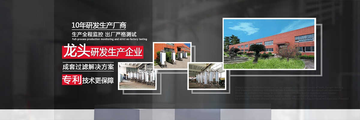 成都愛爾純凈化設(shè)備有限公司,坐落于美麗的天府之國,成都市溫江區(qū)海峽科技園工業(yè)區(qū),專業(yè)從事于過濾、凈化技術(shù)的研發(fā)應用,產(chǎn)品有保健酒過濾設(shè)備、白酒過濾設(shè)備、白酒凈化設(shè)備、水凈化設(shè)備等,公司引進世界先進過濾分子技術(shù),結(jié)合專業(yè)技術(shù)人員資深多年實踐經(jīng)驗,解決酒類、飲水類后期處理難題。 業(yè)務涵蓋,酒類過濾:除混濁沉淀,澄清處理、除苦味,異雜味,新酒催熟陳化處理 、除塑化劑、固形物、雜醇油、甲醇及各類含量超標后期處理。 水類:軟水、純凈水、礦泉水、飲料等凈化處理。用心為客戶提高生產(chǎn)效率、提高產(chǎn)品質(zhì)量、降低生產(chǎn)成本、環(huán)保減排而開發(fā)創(chuàng)新,堅持奮斗。 公司至誠每一位客戶,“誠信服務,客戶至上”為宗旨,為客戶要求,用心凈化每一點滴,我們都將以精準的數(shù)據(jù)化設(shè)計、嚴格的設(shè)備制作質(zhì)量把關(guān)、快捷專業(yè)的安裝調(diào)試以及周到的售后服務,解決客戶生產(chǎn)過程中遇見的各種酒、水后期處理的技術(shù)難題。